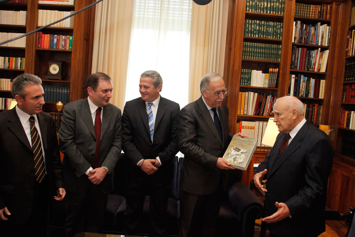 Η αντιπροσωπεία ευχαρίστησε τον Πρόεδρο Παπούλια για τα όσα έχει κάνει για το Δίκτυο και του παρέδωσε μια πολυτελής έκδοση με τίτλο το «Ελληνικά Ολοκαυτώματα 1940-1945».