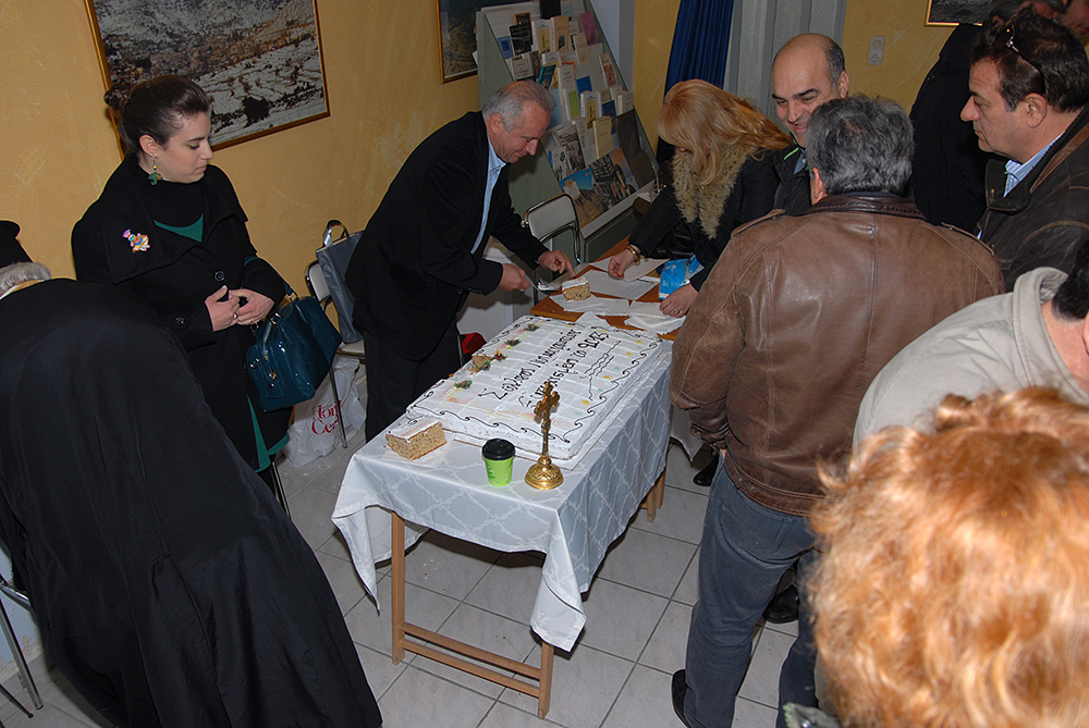 Την σκυτάλη στην συνέχεια πήρε ο πατήρ-Γεώργιος, και αφού «διάβασε» και έκοψε την πίτα ευχήθηκε σε όλους υγεία και δύναμη στην δύσκολη συνέχεια που έρχεται. Ο τυχερός τελικά ήταν ο ίδιος, αφού το κομμάτι του έκρυβε το φλουρί. Έτσι πήρε ένα δώρο της γνωστής εταιρίας AMC, που το έκανε δώρο ο Νίκος Κλέτσας (ανιψιός του Σωκράτη).