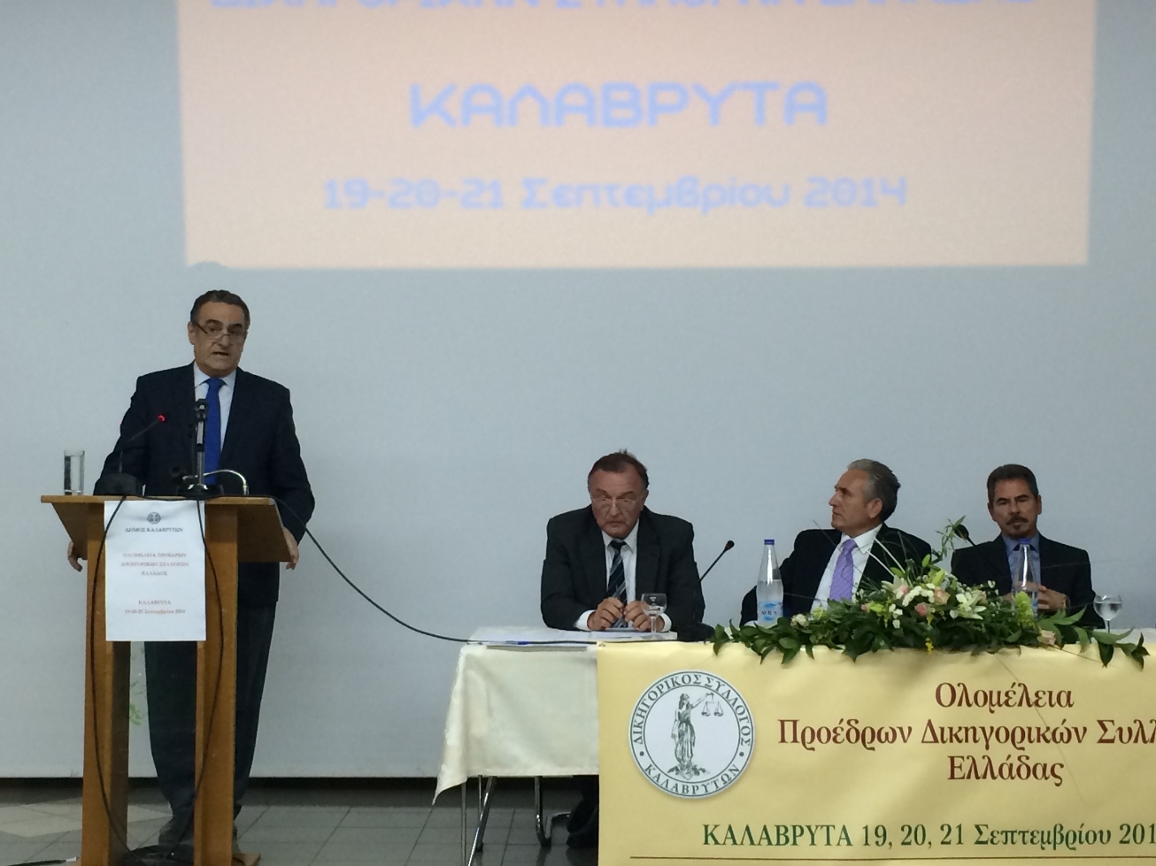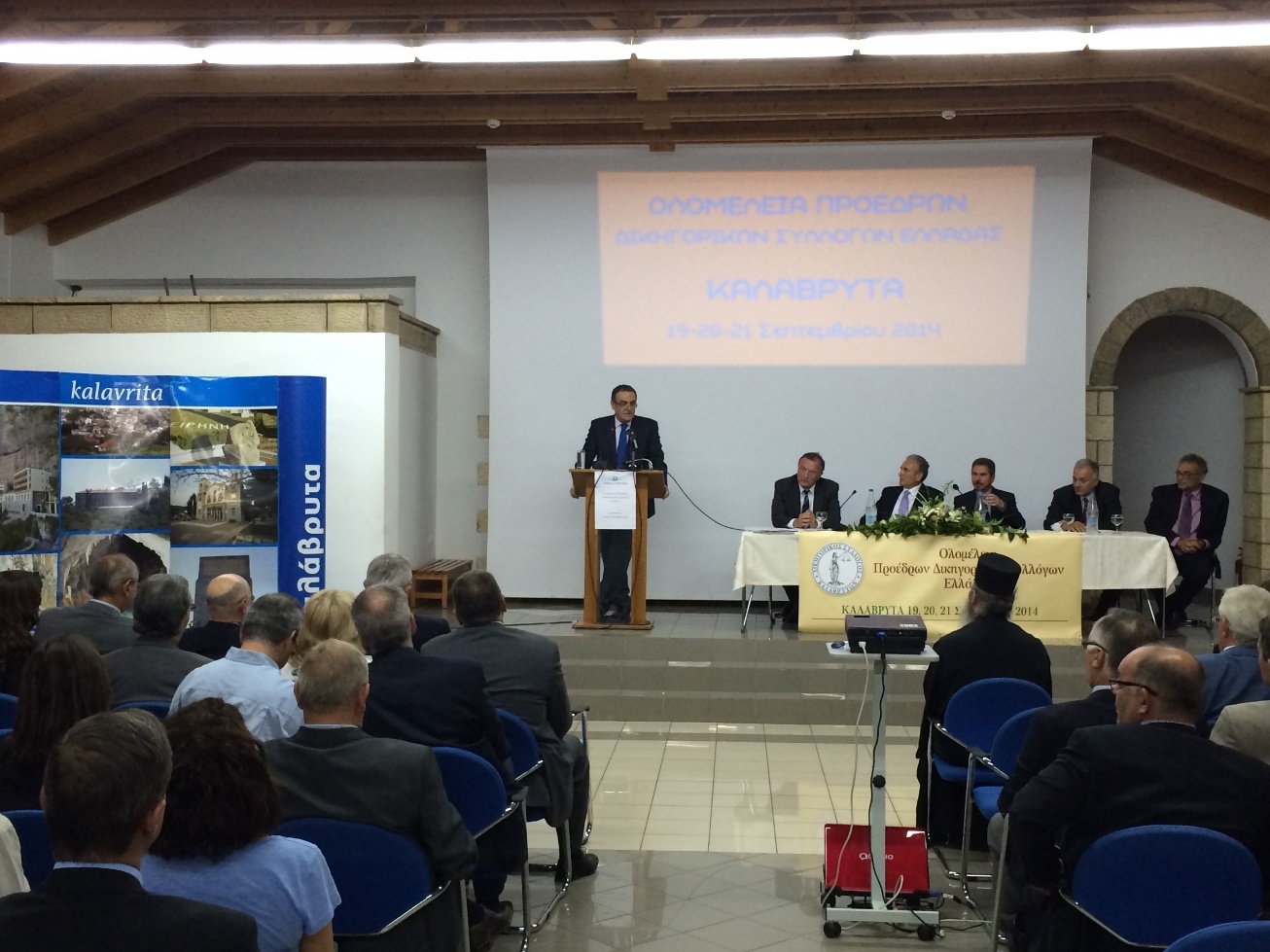 Κλείνοντας τις εργασίες της ολομέλειας ο Πρόεδρος του Δικηγορικού Συλλόγου Αθηνών και Πρόεδρος της ολομέλειας κ. Βασίλης Αλεξανδρής, ευχαρίστησε το Δήμαρχο Καλαβρύτων κ. Γιώργο Λαζουρά και τον Πρόεδρο του Δικηγορικού Συλλόγου Καλαβρύτων κ. Ανδρέα Οικονόμου για την υποδειγματική διοργάνωση και την πολύ καλή φιλοξενία της ολομέλειας.