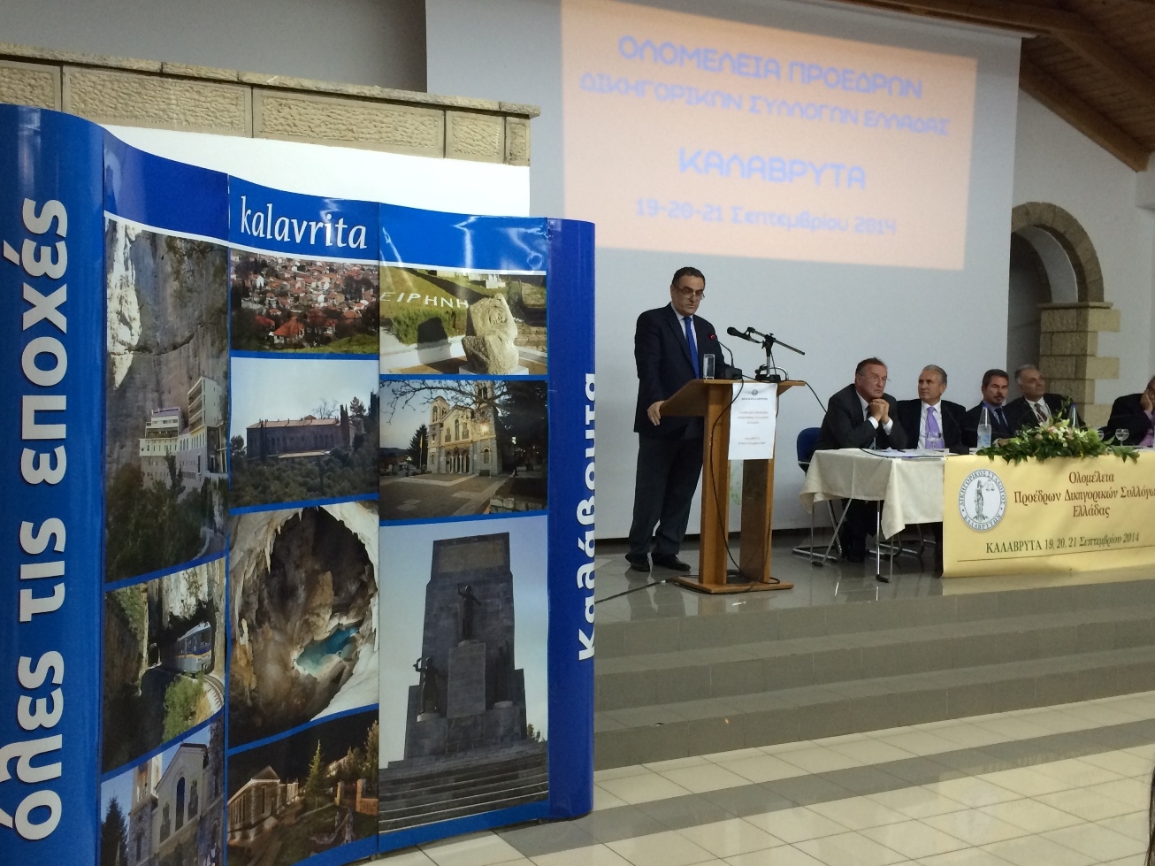 Με επιτυχία, έληξαν, σήμερα, Κυριακή 21 Σεπτεμβρίου, οι τριήμερες εργασίες της ολομέλειας των 63 Προέδρων των Δικηγορικών Συλλόγων της Ελλάδας, που διεξήχθησαν από την Παρασκευή, στα Καλάβρυτα, στο Εκκλησιαστικό Κέντρο Νεότητας ,το “ΟΡΑΜΑ”, κοντά στο μοναστήρι της Αγίας Λαύρας.