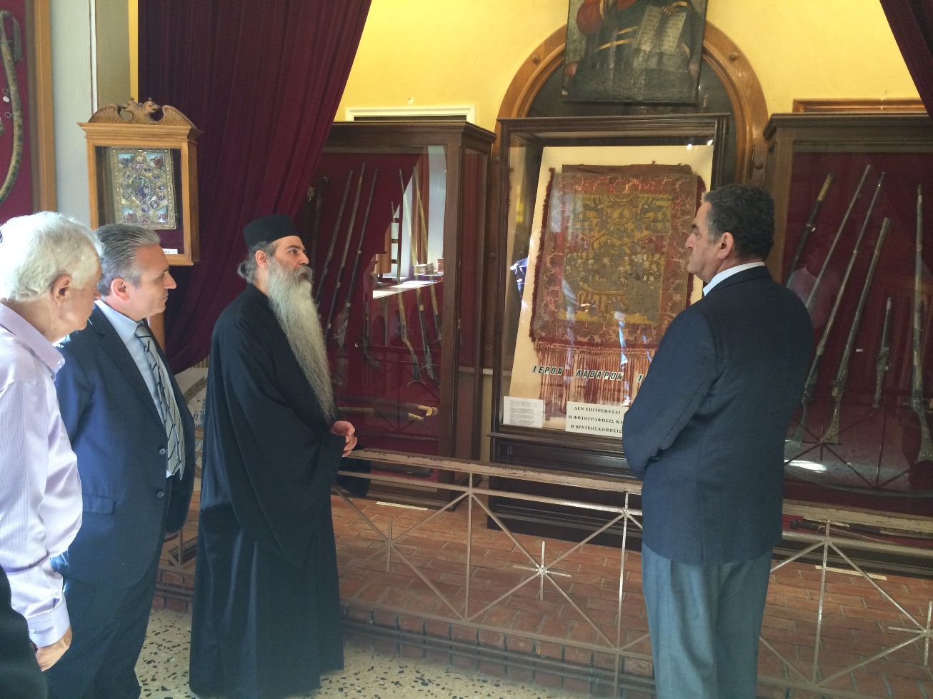 Κατά την επίσκεψη και ξενάγηση στην Ιερά Μονή της Αγίας Λαύρας από τον ηγούμενο αυτής π. Ευσέβιο, ο Υπουργός Δικαιοσύνης κ. Αθανασίου, επεσήμανε την αξία, την προσφορά και το συμβολισμό της Ιεράς Μονής για ολόκληρο τον Ελληνισμό, εκθειάζοντας ιδιαίτερα, τα μοναδικά θρησκευτικά και εθνικά κειμήλια που διαθέτει, με πρώτο αυτών, το ιερό λάβαρο του Αγώνα και αναφερόμενος, στο δέος που αισθάνεται ο κάθε επισκέπτης και προσκυνητής της Μονής.