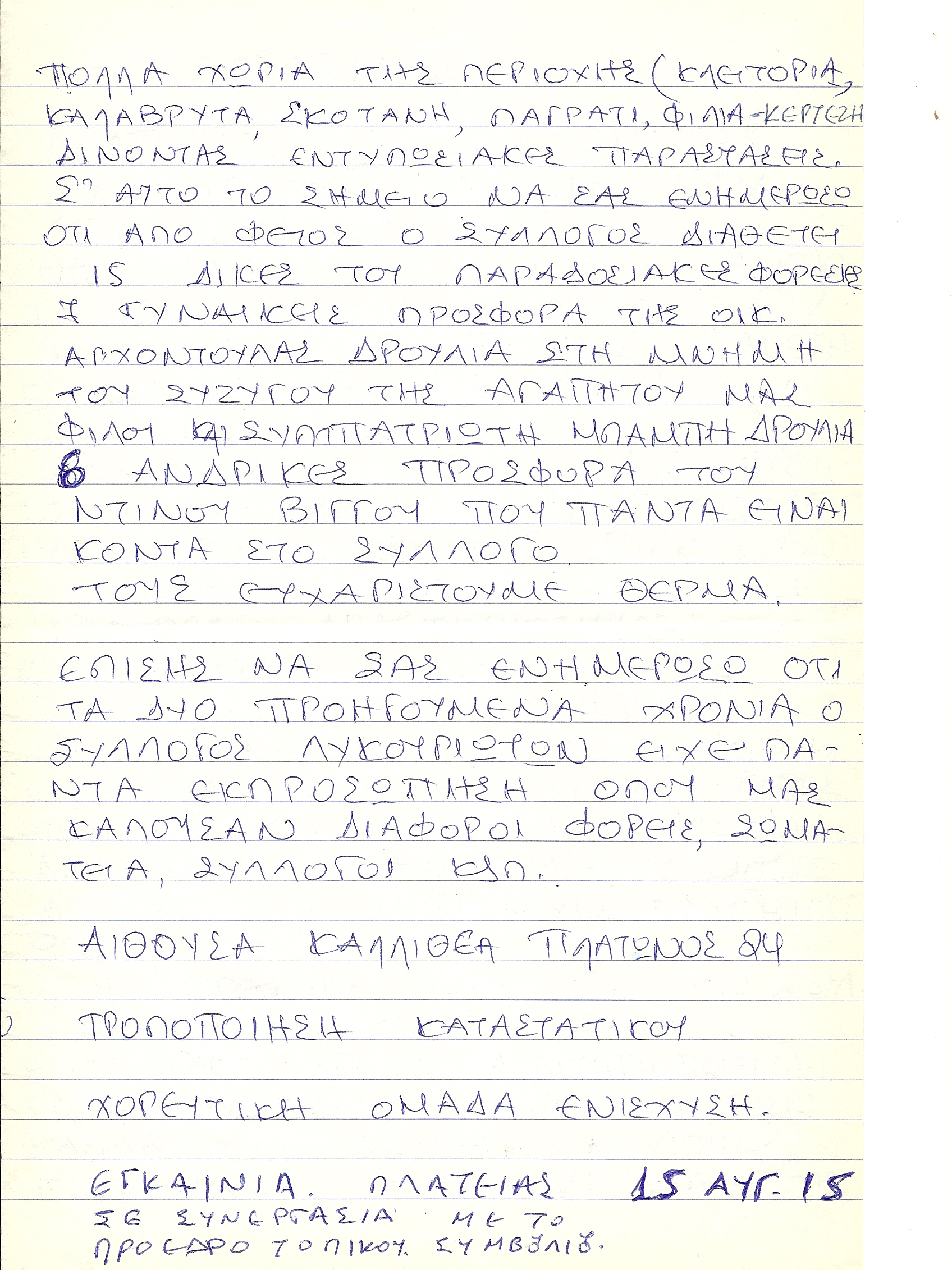Απολογισμός Δ.Σ. Συλλόγου Λυκουριωτών 2015 από τον πρόεδρο Σωκράτη Μούσιο