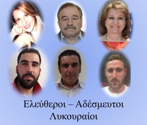Αγαπητές συγχωριανές και αγαπητοί συγχωριανοί η αγάπη για το χωριό μας, στο οποίο ζούμε και δραστηριοποιούμεθα οι περισσότεροι, και η διάθεση να προσπαθήσουμε για τη λύση προβλημάτων που χρονίζουν μας ώθησε να συγκροτήσουμε τον συνδυασμό «Ελεύθεροι- Αδέσμευτοι Λυκουραίοι» και να ζητήσουμε την στήριξή σας. Δεν ασχολούμεθα με το παρελθόν ο καθένας ό,τι μπορούσε προσέφερε. Κοιτάζουμε μπροστά. Γνωρίζουμε τα προβλήματα του χωριού μας (μεγαλύτερο από όλα το αγαθό που ονομάζεται ΝΕΡΟ) και έχουμε την πείρα, τη γνώση και τη θέληση να τα λύσουμε, σε συνεργασία με τη Δημοτική Αρχή.