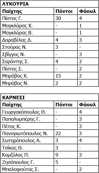 Για την ιστορία, νικητής ήταν η Λυκούρια με σκορ 58-42