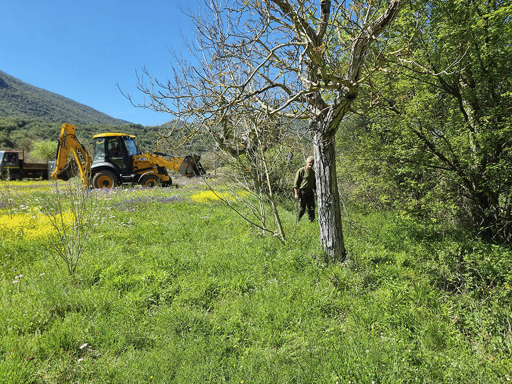Ο κ. Σωτήριος Δουκλιάς έστειλε τον εκσκαφέα και το φορτηγό του Δήμου με χειριστή τον κ. Θεόδωρο Τσιόγκα και οδηγό τον κ. Ηλία Αναστασόπουλο όπου η εμπειρία τους βοήθησε στα μέγιστα για το σωστό αποτέλεσμα.