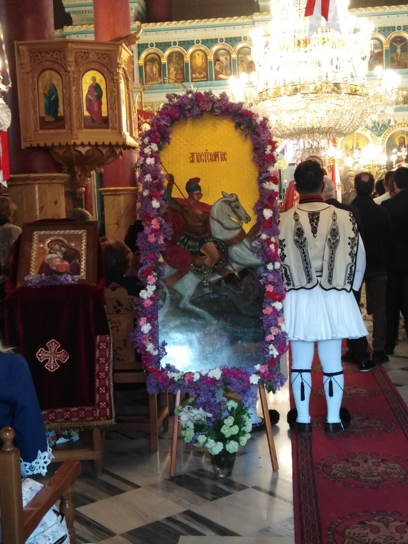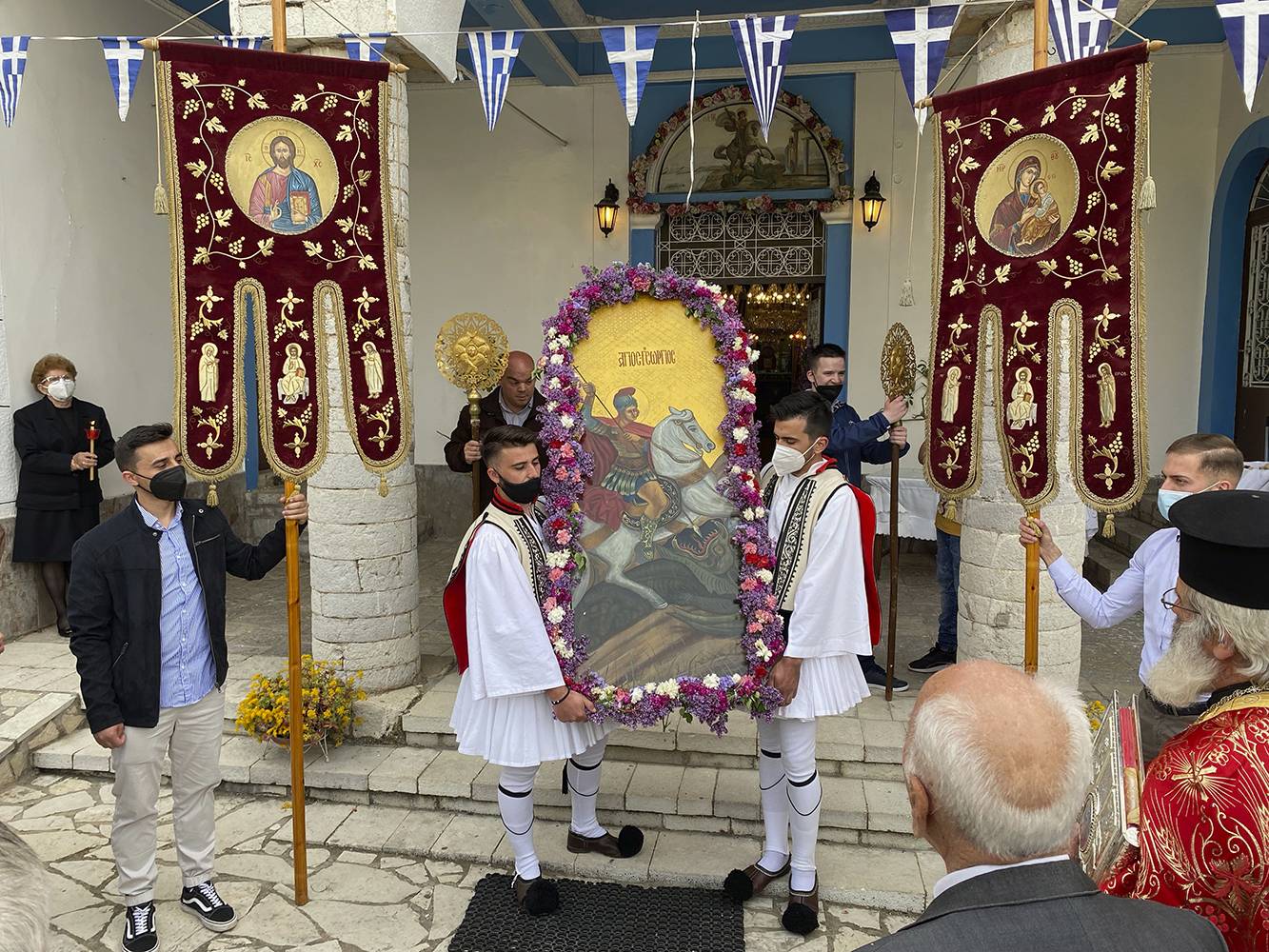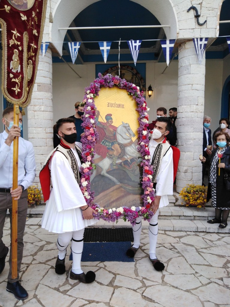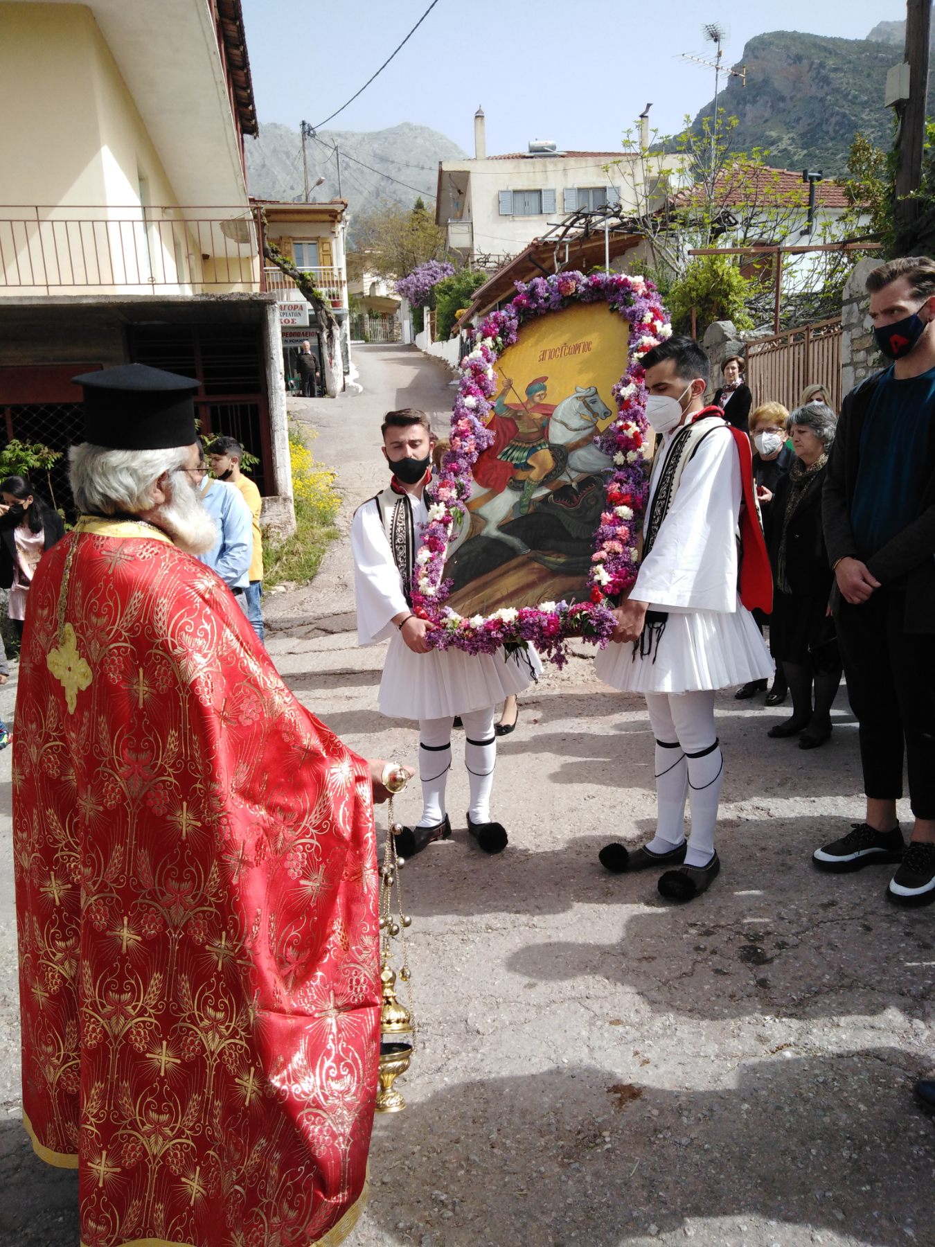 Με λαμπρότητα και κάθε επισημότητα πραγματοποιήθηκε την Δευτέρα 25 Απριλίου ο εορτασμός του πολιούχου του χωριού μας, Αγίου Γεωργίου. Οι άρτοι και φέτος πολλοί, λόγω των πολλών ονομάτων που γιορτάζονται στο χωριό. Το πρωί τελέσθηκε Πανηγυρική Θεία Λειτουργία στον ιερό ναό και ο καιρός βοήθησε για να πραγματοποιηθεί η καθιερωμένη περιφορά της εικόνας από τα λυκουριωτόπουλα, ντυμένα με παραδοσιακές φορεσιές.