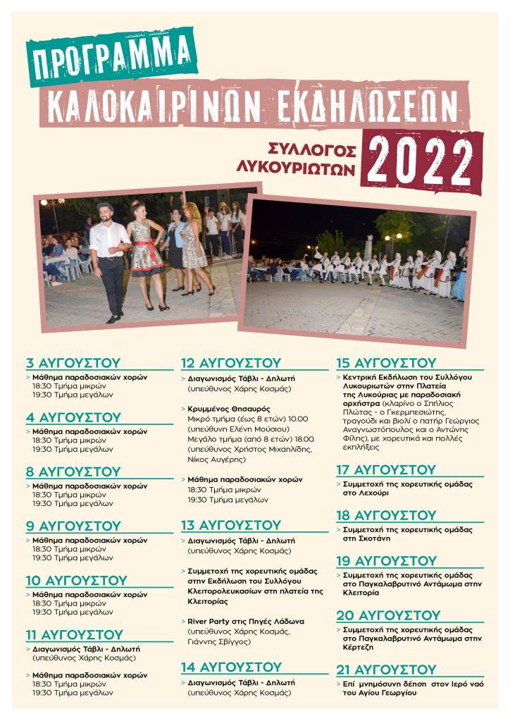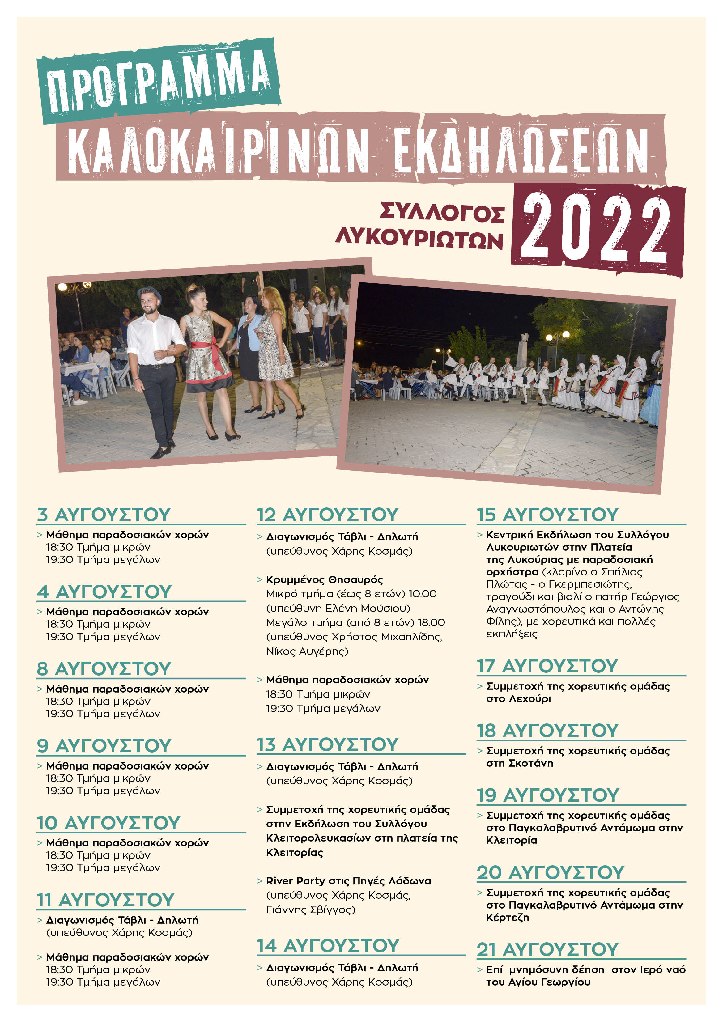 Στις 10 Απριλίου 2022 και ώρα 11.00 το πρωί στην αίθουσα της Παγκαλαβρυτινής Ένωσης διεξήχθη η Γενική Εκλογοαπολογιστική Συνέλευση του Συλλόγου Λυκουριωτών.